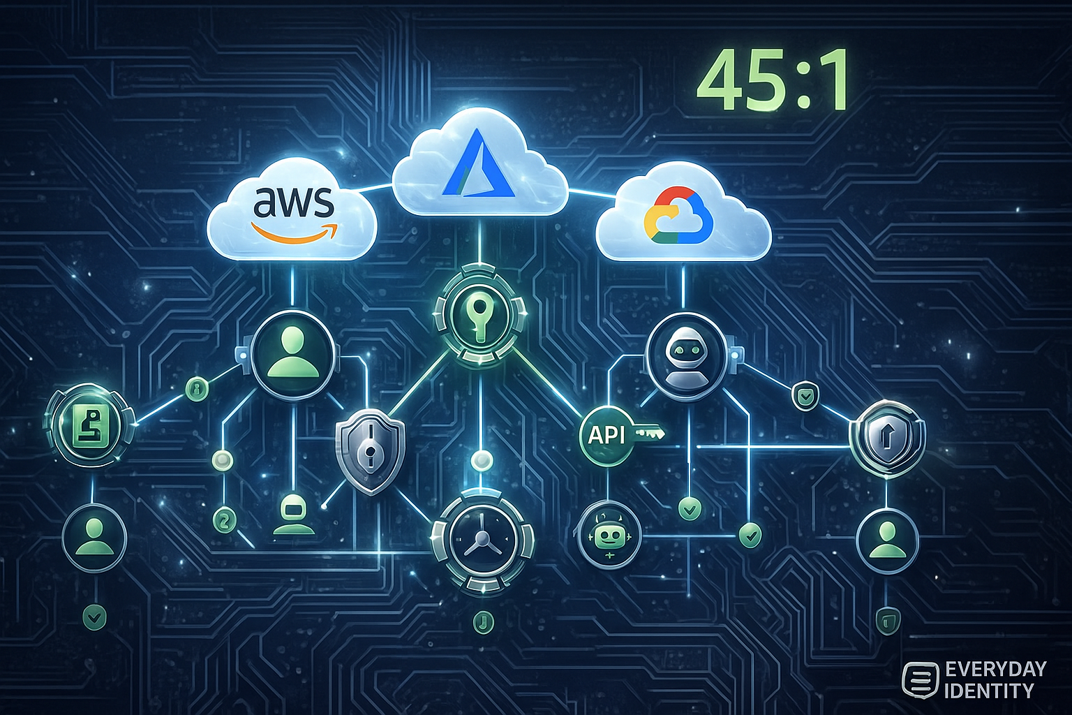 45 to 1. Let that ratio sink in. You’ve got 1,000 employees? You’ve probably got 45,000 non-human identities in your cloud environment. And here’s the gut punch: you have robust identity management for the 1,000 humans (directories, MFA, SSO, lifecycle automation, quarterly access reviews), but the 45,000 machines? Most organizations can’t even tell me how many they have, let alone who owns them.